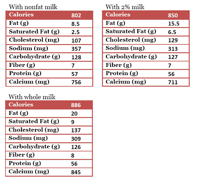 • 1  1/2 cups nonfat, 2% or whole milk (or milk substitute of your choice)
