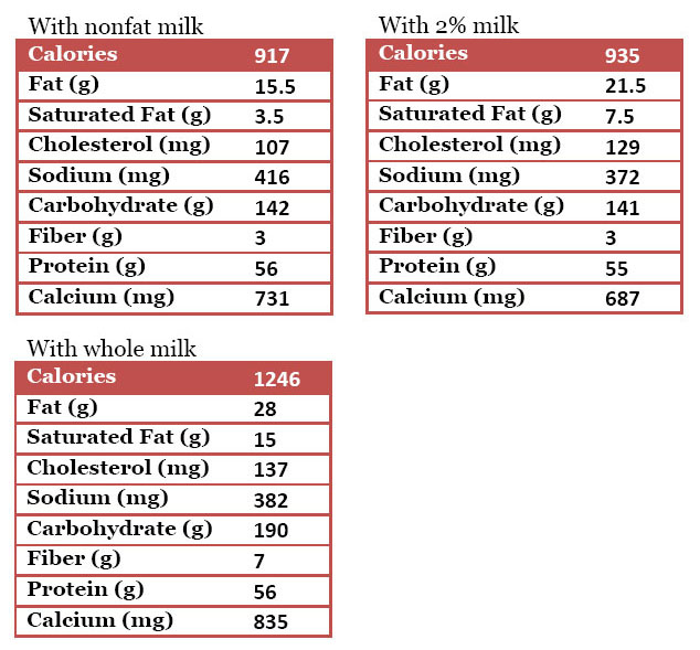 • 1  1/2 cups nonfat or 2% milk (or milk substitute of your choice)