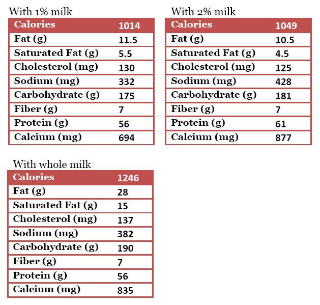 • 1  1/2 cups 1%, 2% or whole milk (or milk substitute of your choice)