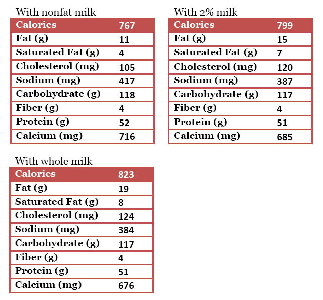 • 1 cup nonfat, 2% or whole milk