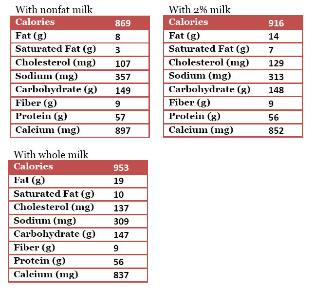 • 1  1/2 cups nonfat, 2% or whole milk