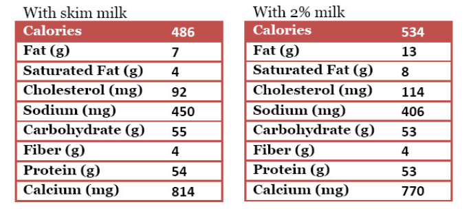• 1  1/2 cups of nonfat or 2% milk (or milk substitute of your choice)