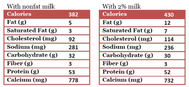 • 1  1/2 cup nonfat milk or 2% milk (or milk substitute of your choice)