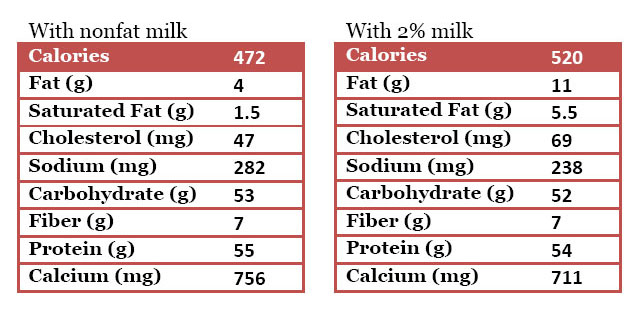 • 1 1/2 cups nonfat or 2% milk