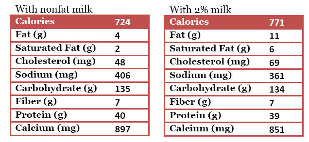 • 1  1/2 ups nonfat or 2% milk (or milk substitute of your choice)