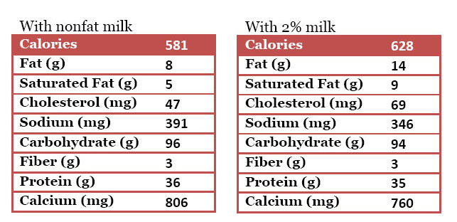 • 1  1/2 cups nonfat or 2% milk (or milk substitute of your choice)