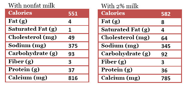 • 1  1/2 cups nonfat or 2% milk (or milk substitute of your choice)