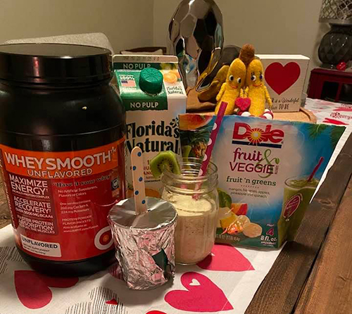 • 1/2 cup of Dole Fruit & Veggie Frozen Smoothie Mix