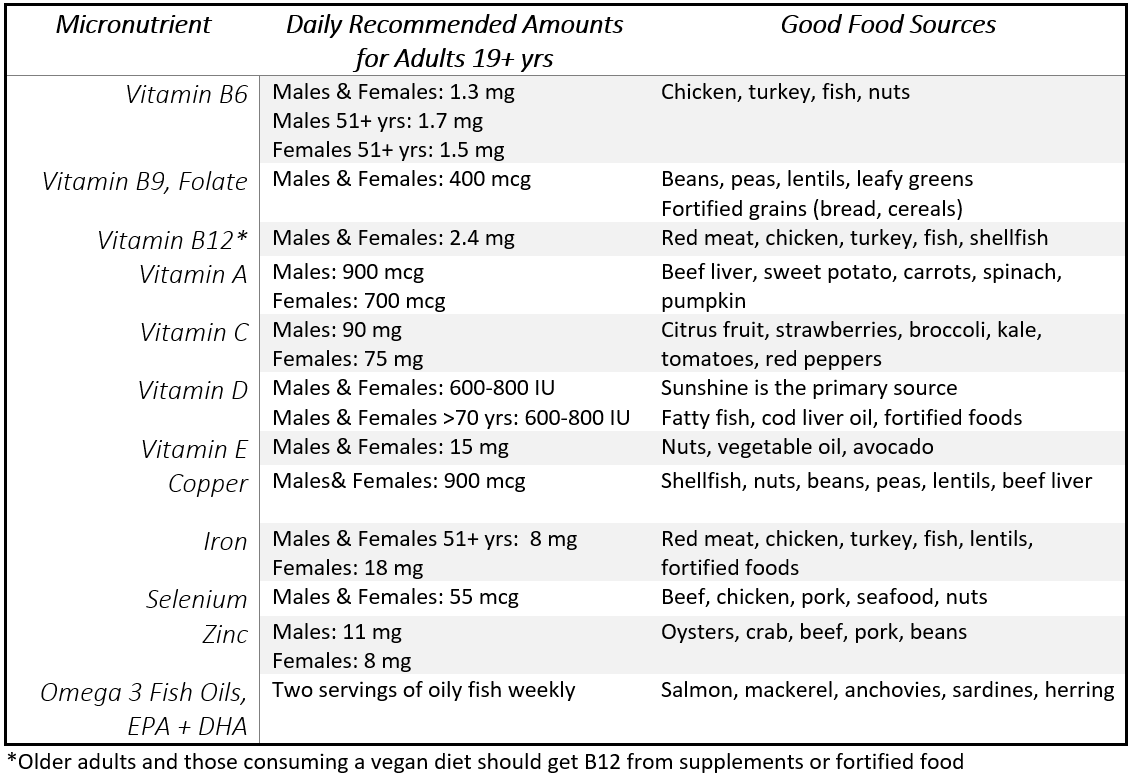 • which micronutrients may be beneficial in higher than current recommended amounts