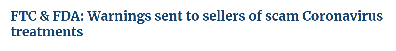 [1] Federal Trade Commission, Coronavirus Warning Letters to Companies. https://www.ftc.gov/coronavirus/enforcement/warning-letters. Accessed July 14, 2020.