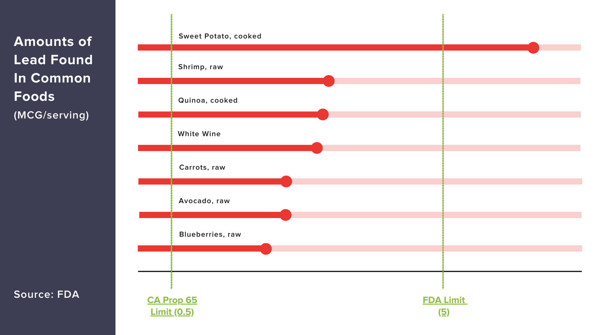 For instance, consuming certain fruits vegetables could expose you to amounts of lead that exceed California’s Prop 65 threshold.